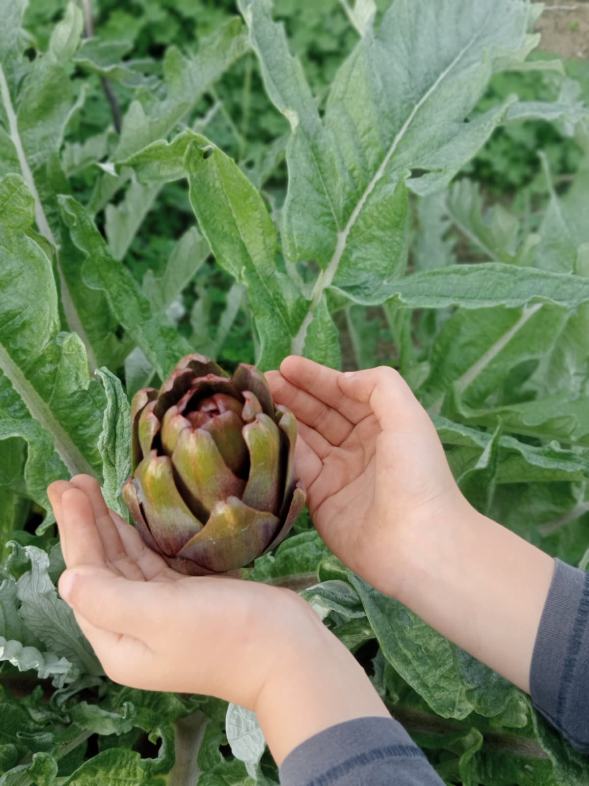 Il Carciofo Violetto di Provenza è la versione più gentile ed elegante del carciofo: un ortaggio senza spine, dal profilo affusolato e dal colore viola intenso che lo rende subito riconoscibile. Le brattee esterne sono carnose ma sottili, mentre il cuore è tenero e chiaro, con una dolcezza naturale che conquista anche chi generalmente trova il carciofo “troppo amaro”.